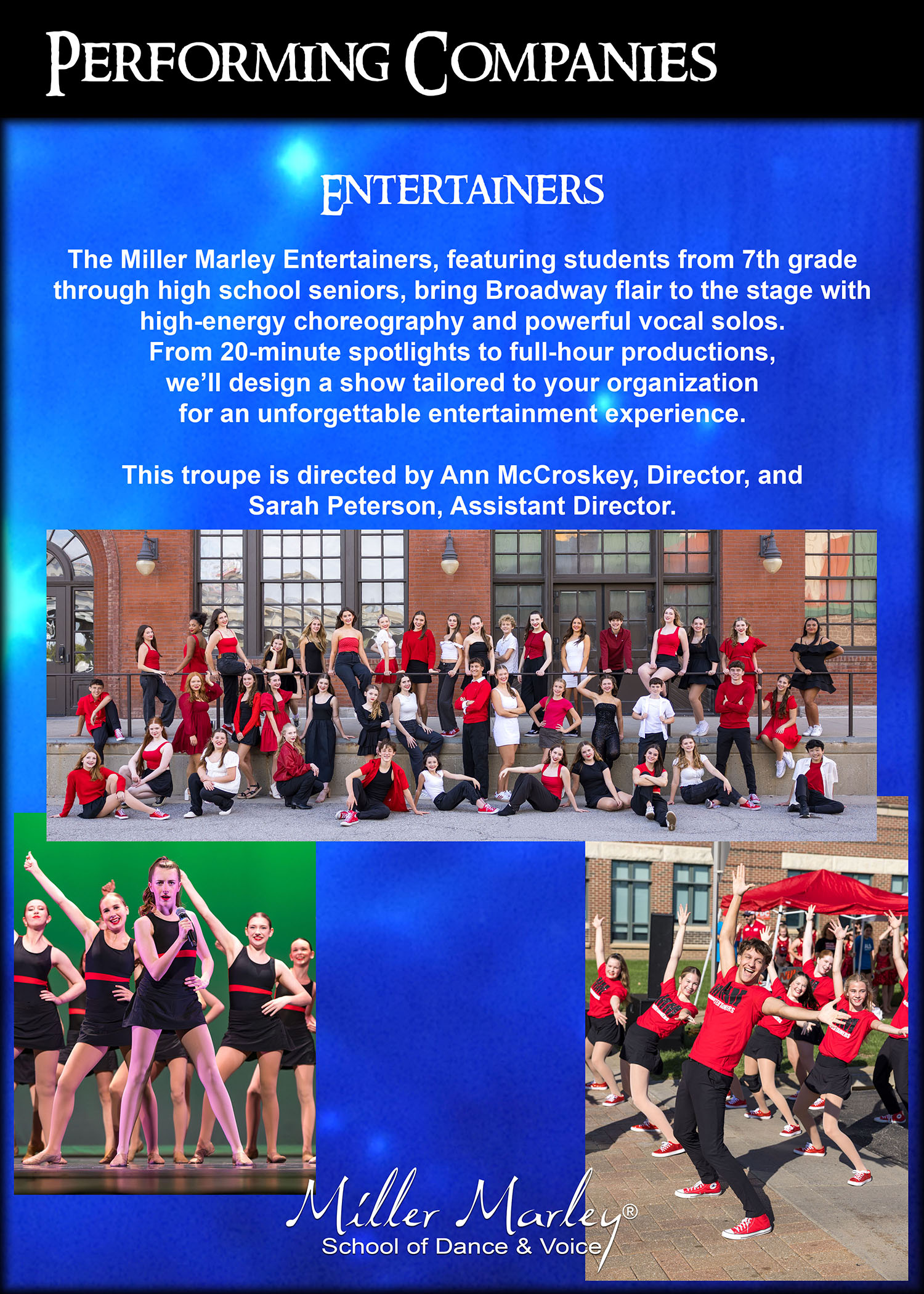 If you are interested in booking a Miller Marley Performing Company for your event, or to learn about membership opportunities, please contact Miller Marley at (913) 492-0004.